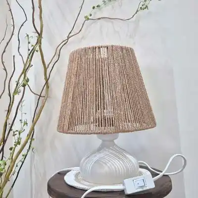 آباژور رومیزی رافیا با رنگ کرم تیره و پایه سفید مات
